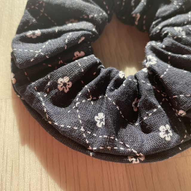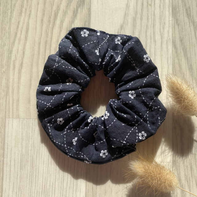 Laissez-vous séduire par la douceur étoilée du chouchou Astrée, confectionné à la main dans un tissu bleu marine parsemé de petites fleurs blanches, comme un ciel nocturne parsemé d’étoiles. ✨