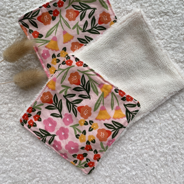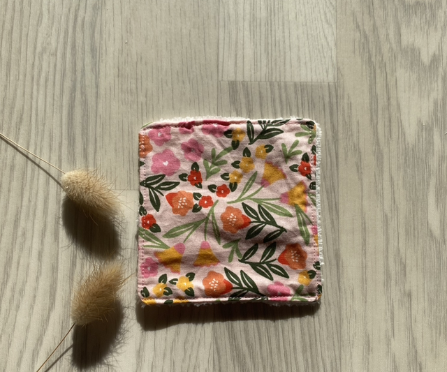 Adoptez une routine beauté ou bébé plus éco-responsable avec ce coton lavable cousu main, en tissu imprimé Zinnia fleuri et coloré 🌼✨