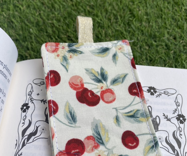 Glisse une note fruitée dans tes lectures avec ce joli marque-page en tissu à motif cerises 🍒