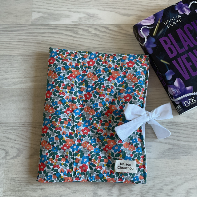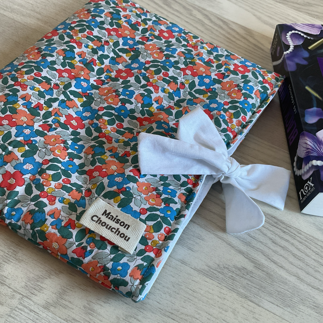 Emportez vos lectures partout en les protégeant avec élégance. Cette pochette cousue main est réalisée dans un coton fleuri Vintage Flowers, au style rétro et coloré qui apporte douceur et charme à vos lectures.