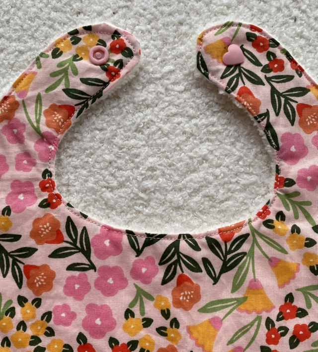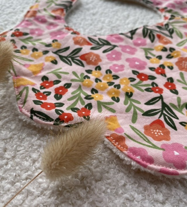 Avec son délicat tissu fleuri rose et ses jolies courbes festonnées, le bavoir Rosalia est à la fois tendre et raffiné. Parfait pour accompagner les repas ou les moments de câlins, tout en ajoutant une touche d’élégance au quotidien de bébé.