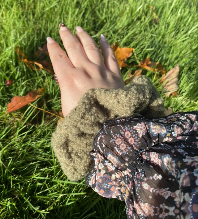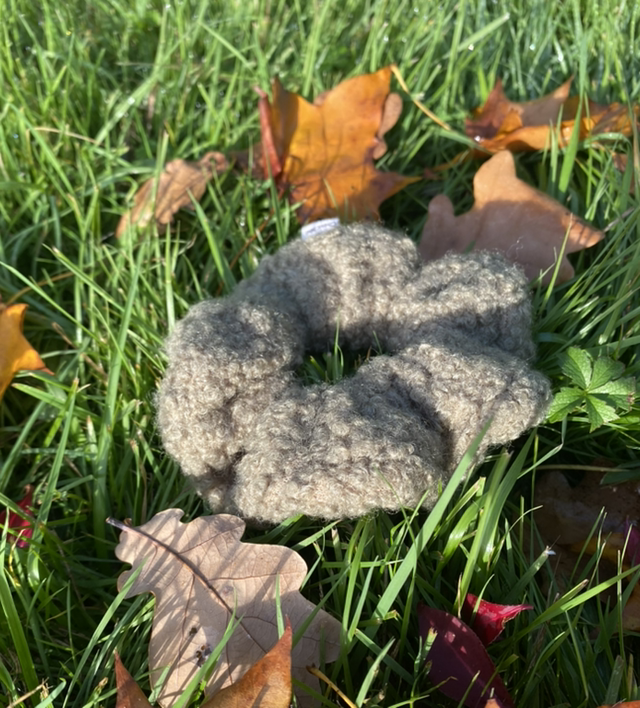 Ce chouchou en bouclette couleur noisette, au toucher moelleux et réconfortant, apporte une note naturelle et chaleureuse à toutes vos tenues.